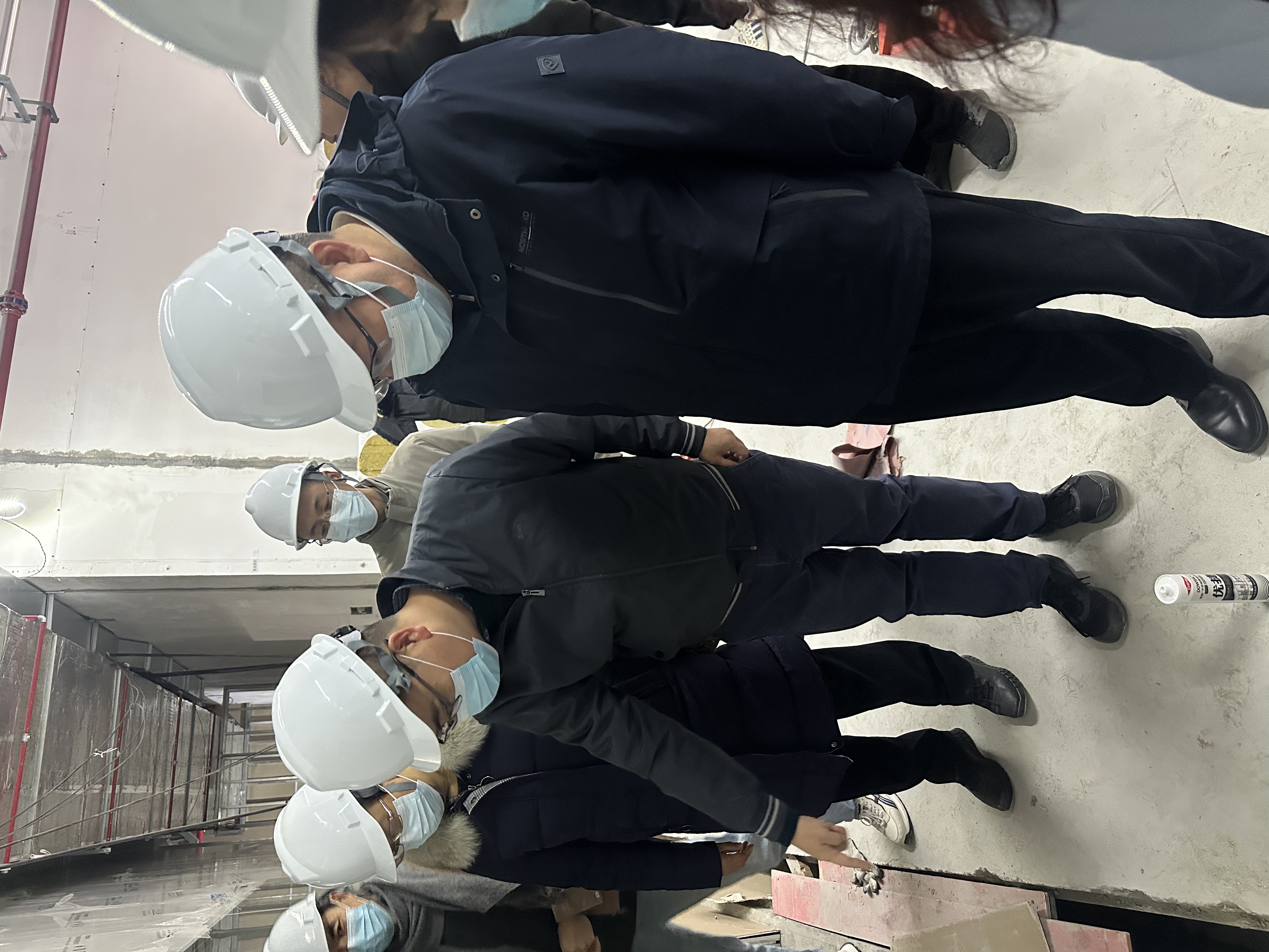孙真荣院长一行深入两个园区的装修施工现场,仔细察看了办公区域布局、实验楼宇结构改造、管线铺设等情况,详细询问了工程整体进度、施工工艺标准、质量管控措施及后续节点计划等关键事项,并与现场施工管理人员、技术人员就实验室功能布局优化等问题进行了深入交流。