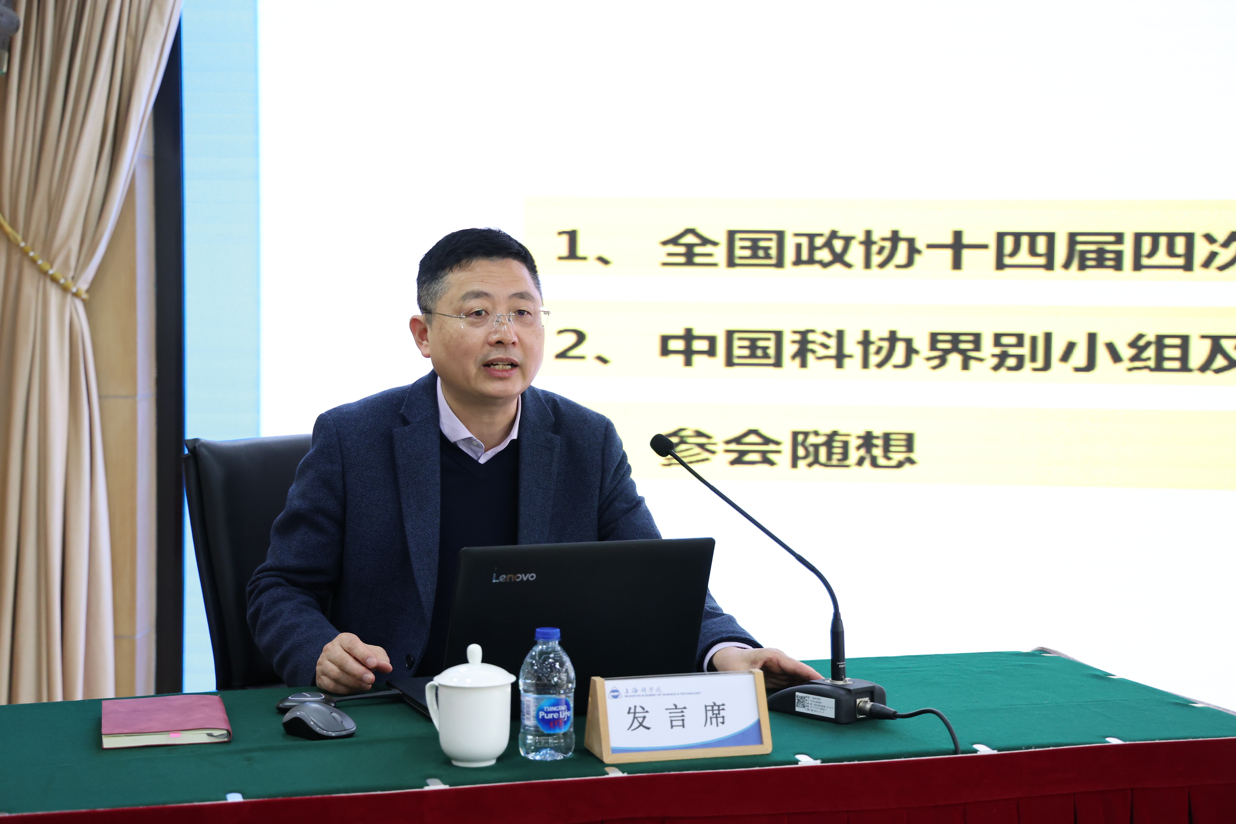 3月19日,上海科学院召开院党委理论学习中心组(扩大)学习会,传达学习全国两会精神,第十四届全国政协委员、民盟中央委员、民盟上海市委专职副主委曹阿民作专题报告。院党委副书记、院长孙真荣主持会议并讲话。